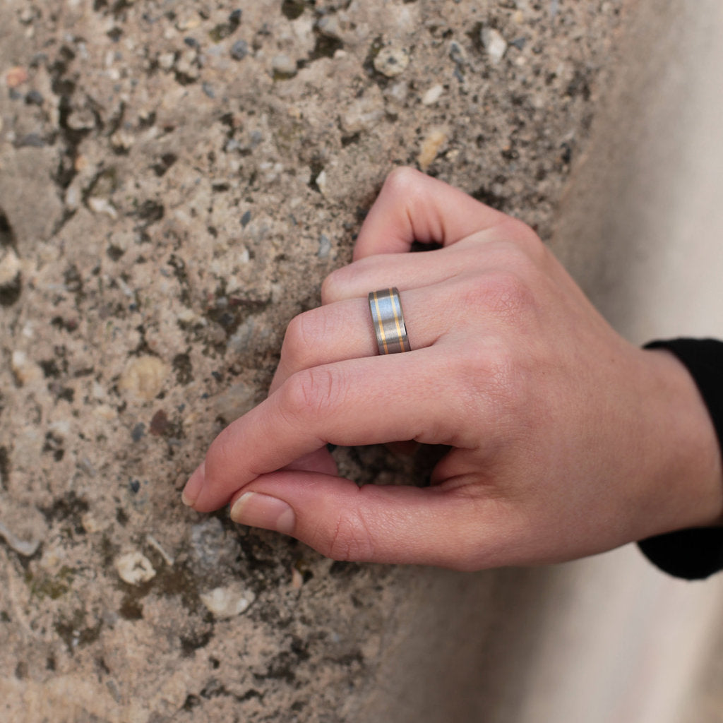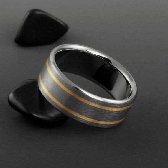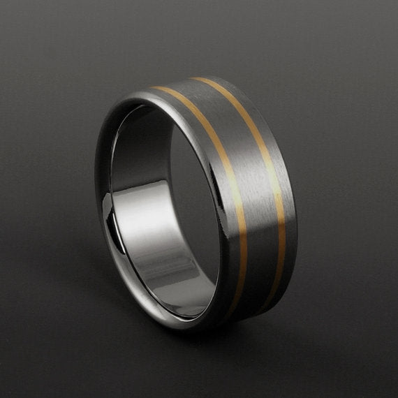 Titanium Band - Two 18k Solid Gold Pinstripes on Either Side
