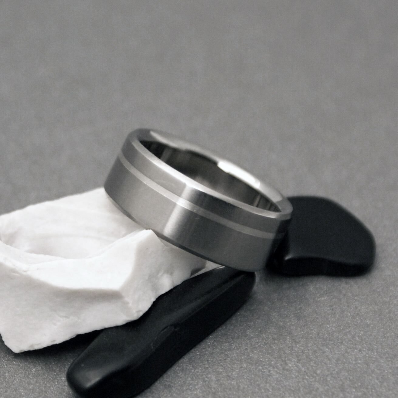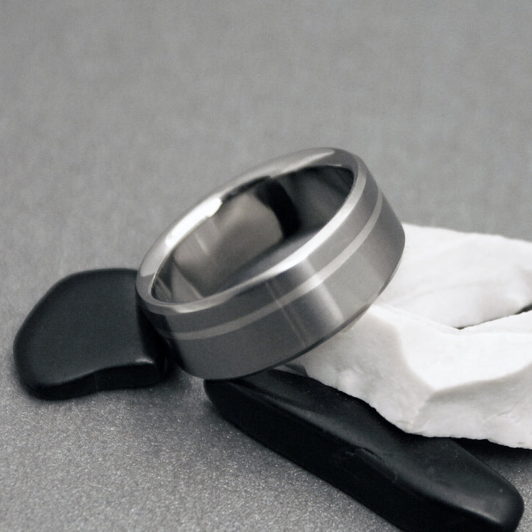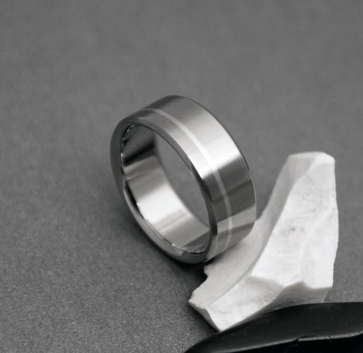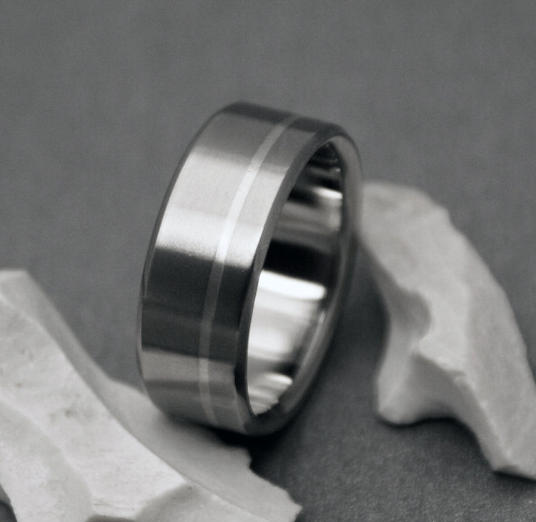 Titanium Ring - One Off Center Sterling Silver Pinstripe