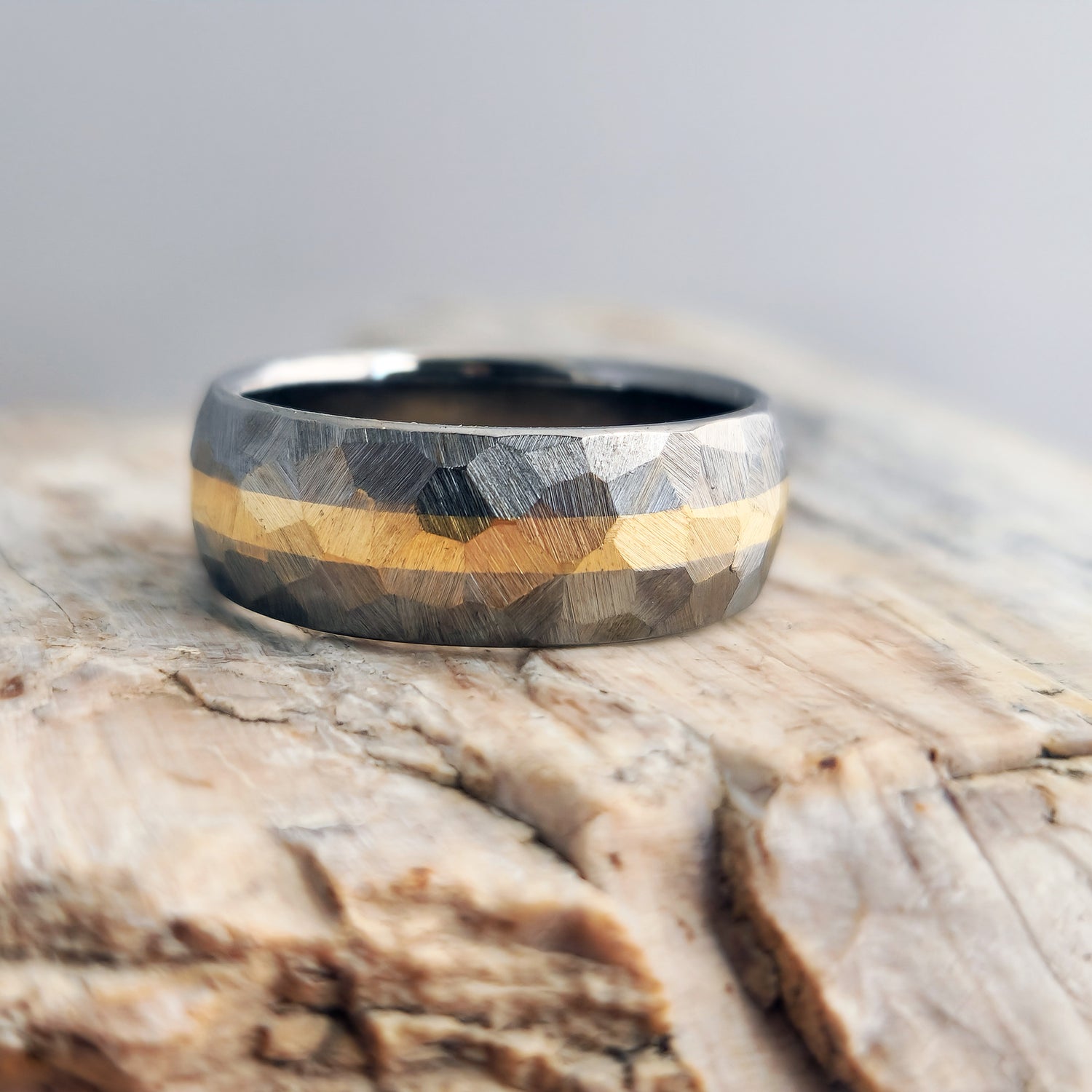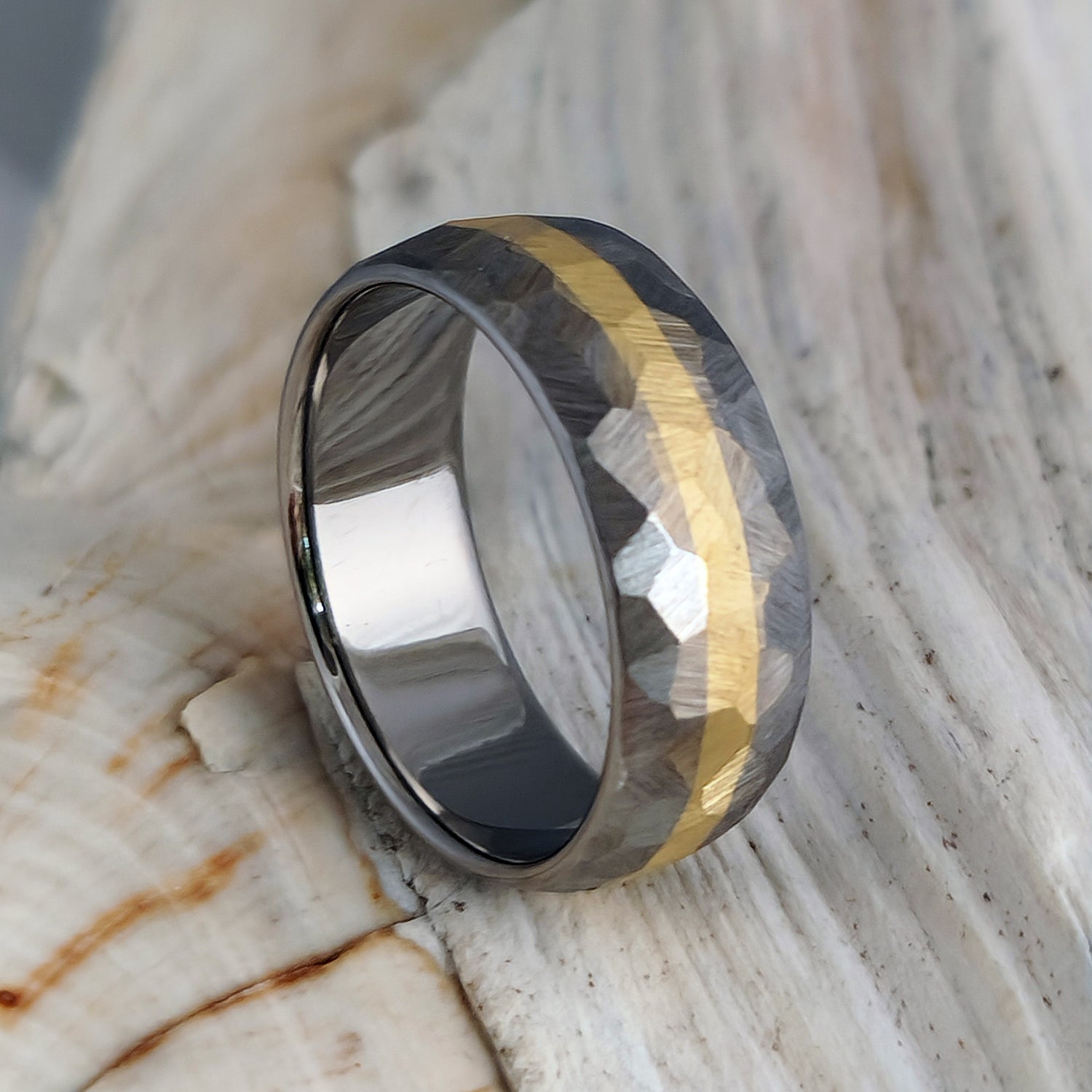 Titanium Ring with our 'Mosaic' Faceted Texture and a Wide Centered 18k Solid Gold Inlay