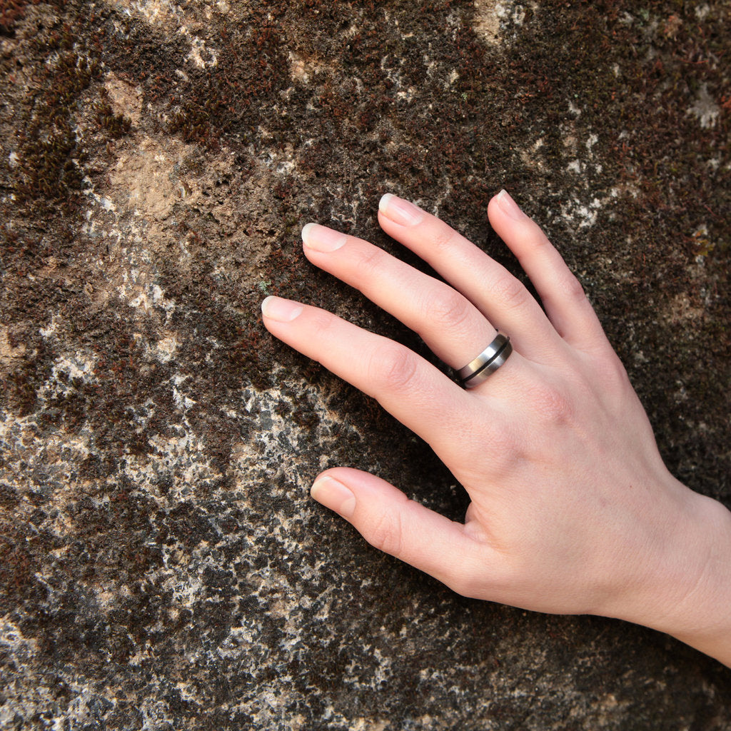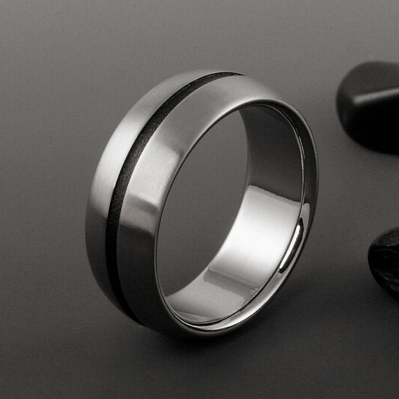 Titanium Ring - Domed Profile - Wide Centered Black Pinstripe