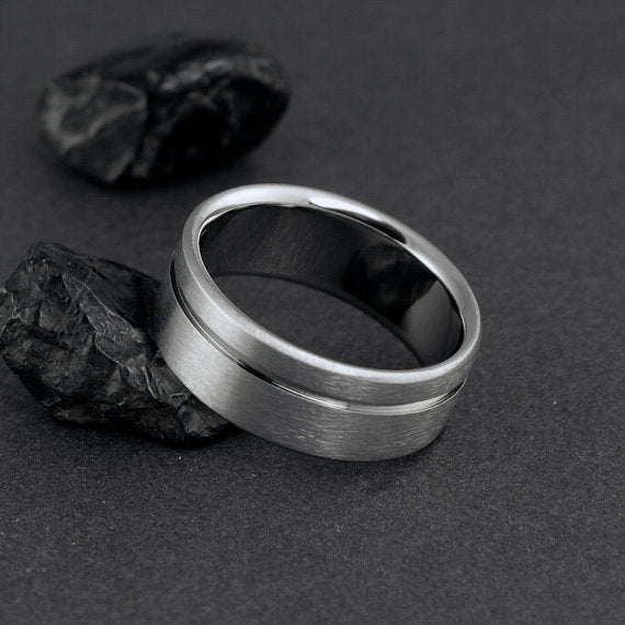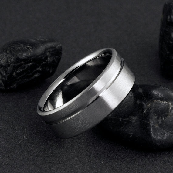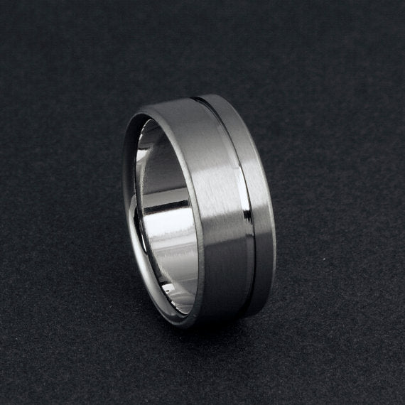 Titanium Ring in a Flat Profile with an Off-Center Pinstripe