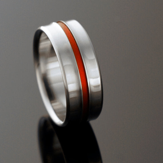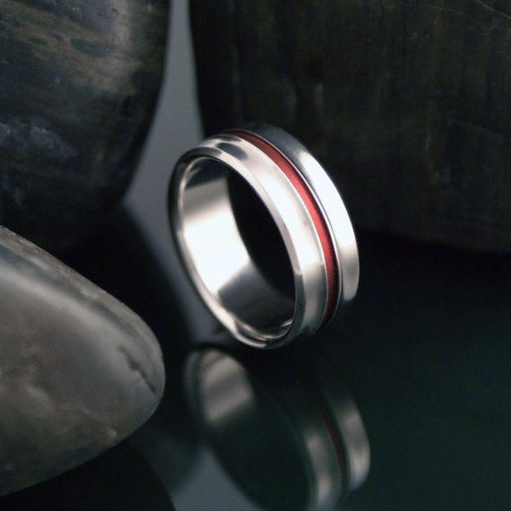 Titanium Ring - Gradually Raised Center - Red Inlay